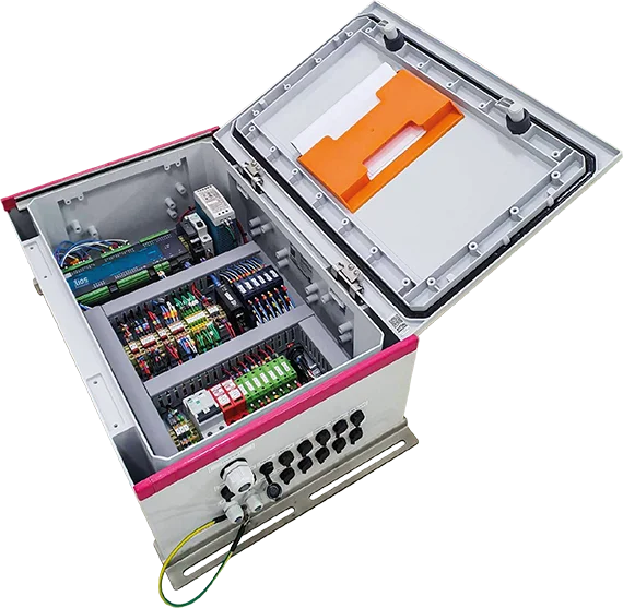 Equipped with stainless steel IP65 connectors, it ensures quick and, safe sensor replacement in the field. Sensor cables are labeled at both ends, and power is supplied via cable glands.