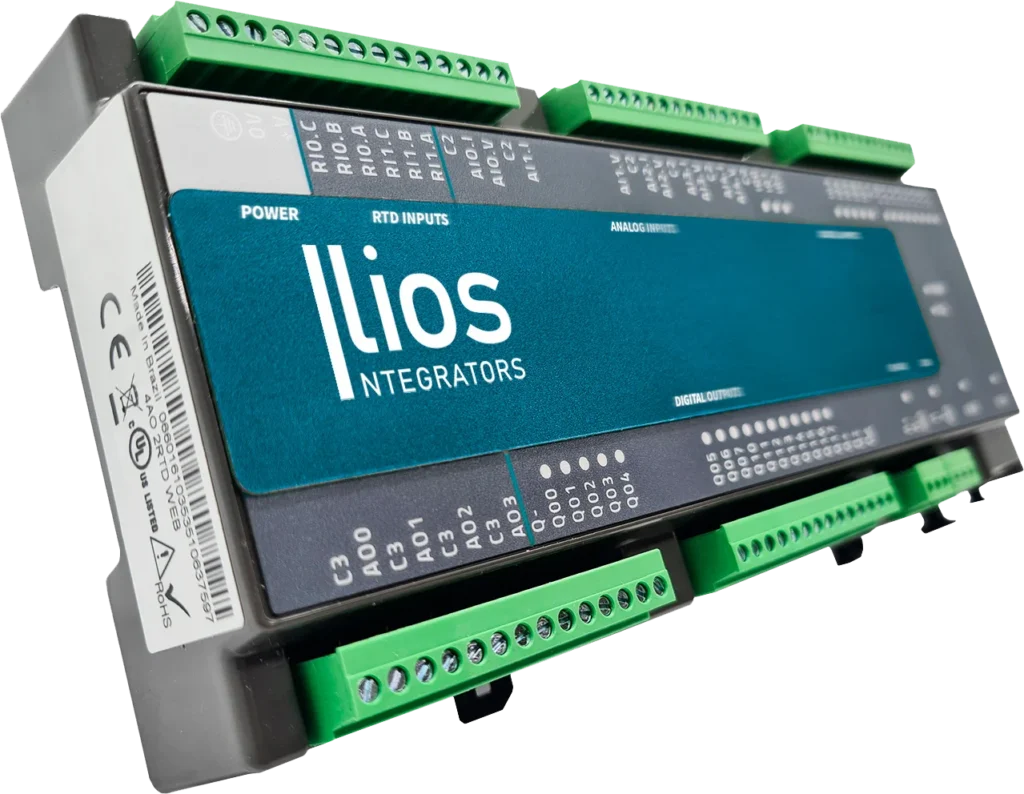 Ilios features advanced pyranometers like the SR300, compliant with the IEC 61724 standard, providing solar irradiance data along with diagnostics for internal humidity, tilt, temperature, ventilation, and pressure.